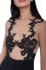 Lace appliqué silk net top designed to be worn under a plunging neckline coatdress or a jacket