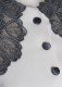 A chic ivory venetian wool dress elegantly contrasted by a racer cut lace ‘bolero’ flowing into tight sleeves fitted into the wrist.