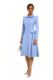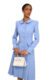 A beautifully tailored coatdress with a sculpted bodice and softly flared skirt, designed to create a graceful, feminine silhouette. It features a refined rounded collar, fabric-covered buttons down the front, and delicately trimmed curved panels that contour the waist with elegant precision. Structured shoulders and clean, elongated sleeves complete the look, giving it a polished, couture-inspired finish perfect for formal occasions. A contemporary take on a ’50’s look