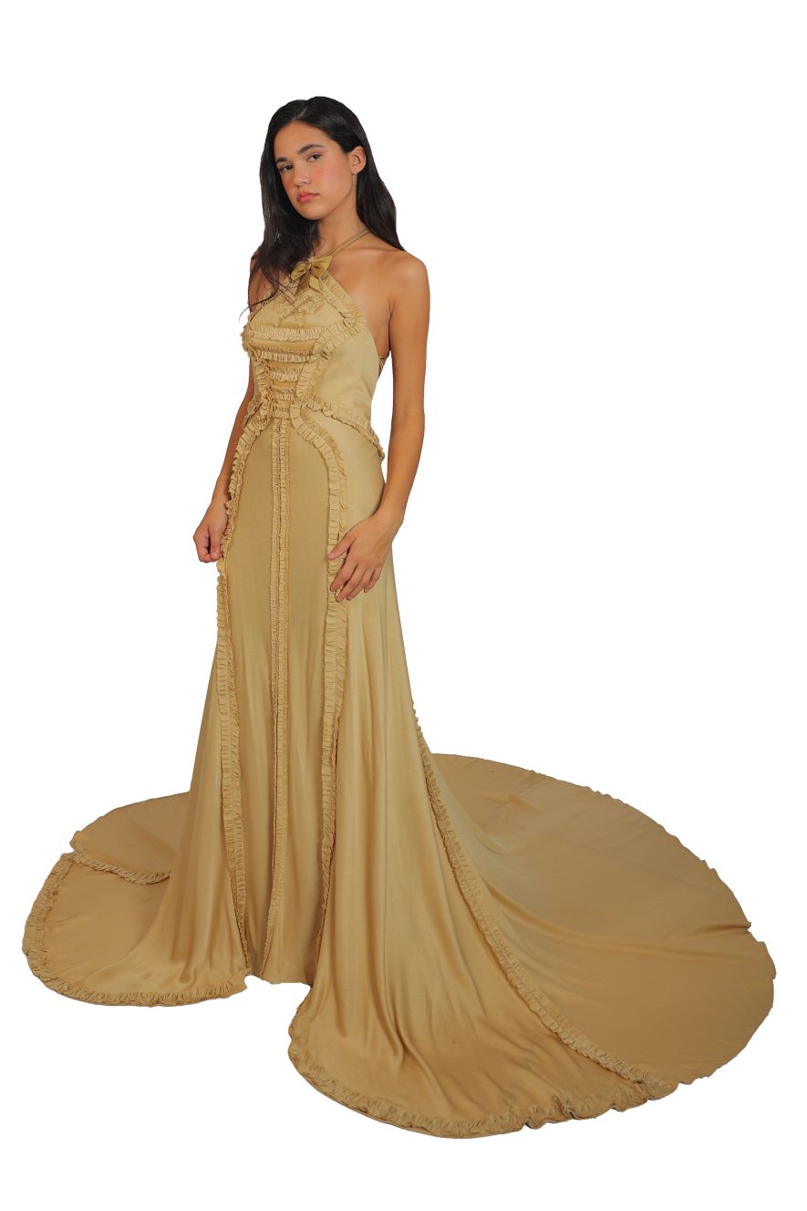 Marie Antoinette on October 4, 2025 Marie Antoinette A rococo style gown in a gold 100% pure silk Share this design: