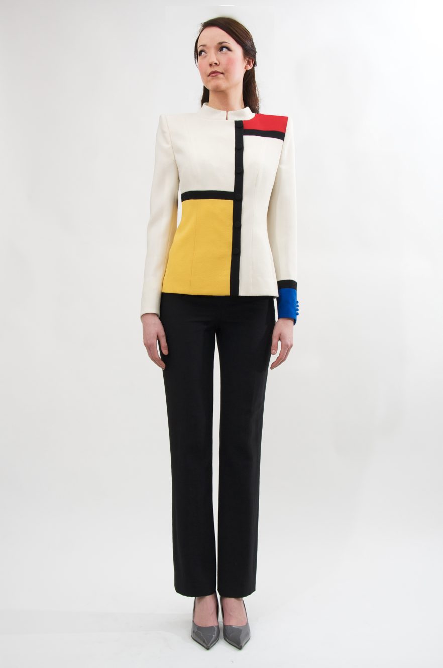 A creative fusion of art and fashion, this Immaculately tailored wool crepe coatdress has sharp lines, and a contrasting palette of vibrant primary colours making this statement piece unforgettable.