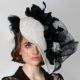 Black Chantilly lace plunges into a dramatic V on this tailored lace jacket over a bouncing, full ivory silk skirt