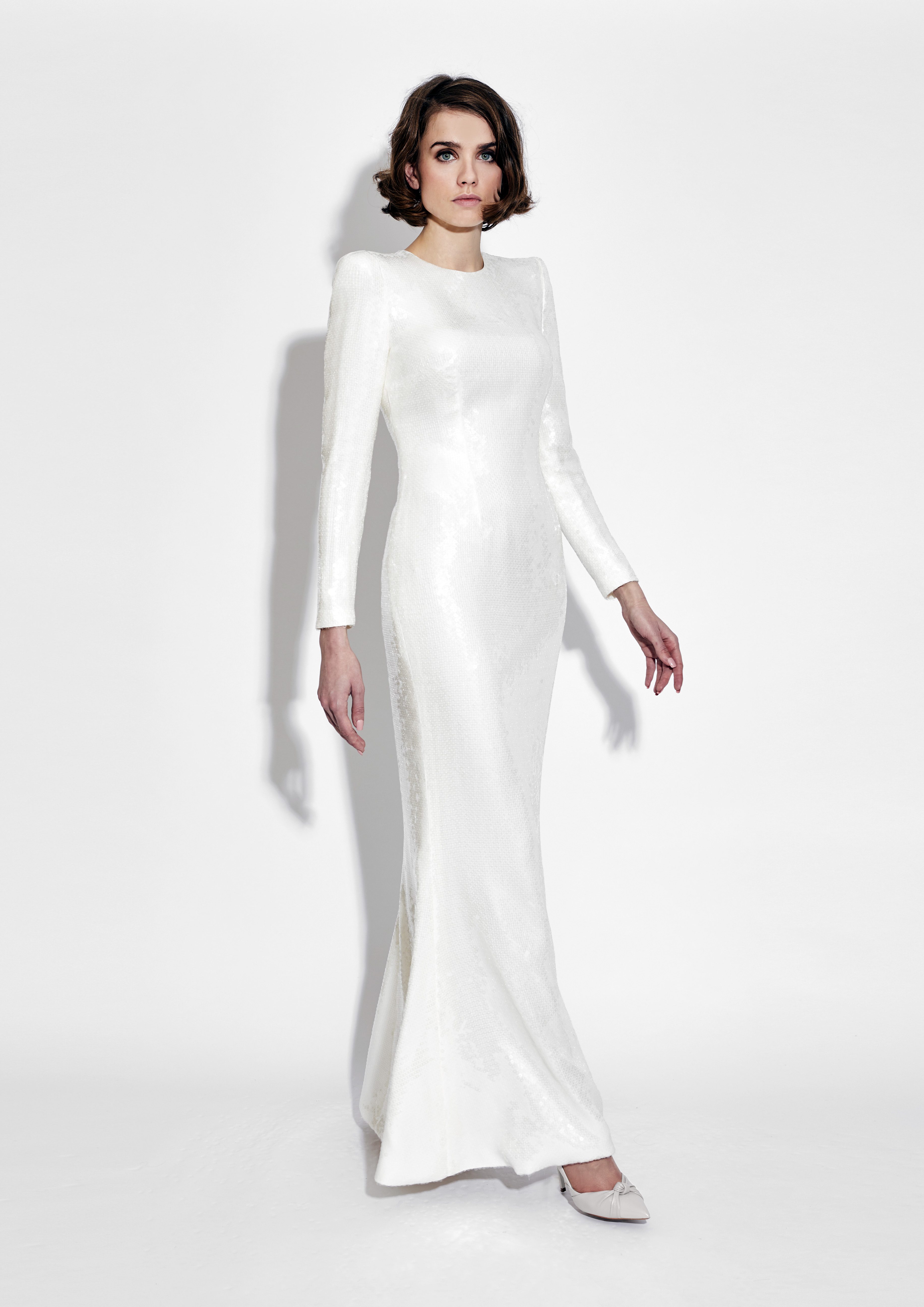 Zoe on October 16, 2019 Zoe An ultra-feminine take on the jumpsuit. Old gold Chantilly lace draped on organza, held with spaghetti straps and clinched at the waist with a cummerbund. Share this design: